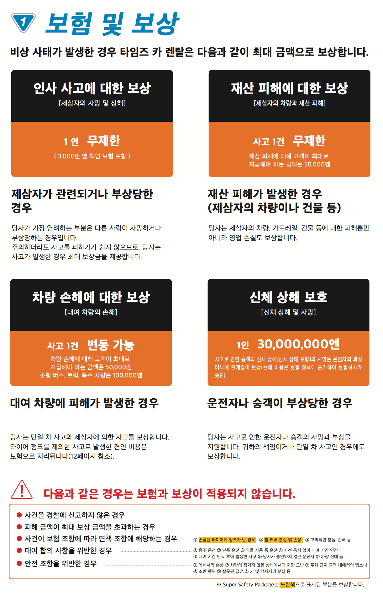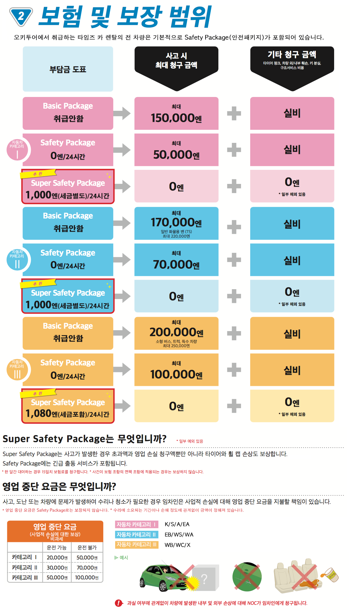 오키투어의 타임즈 렌트카의 보험에 대해서 상세히 안내해 드립니다.